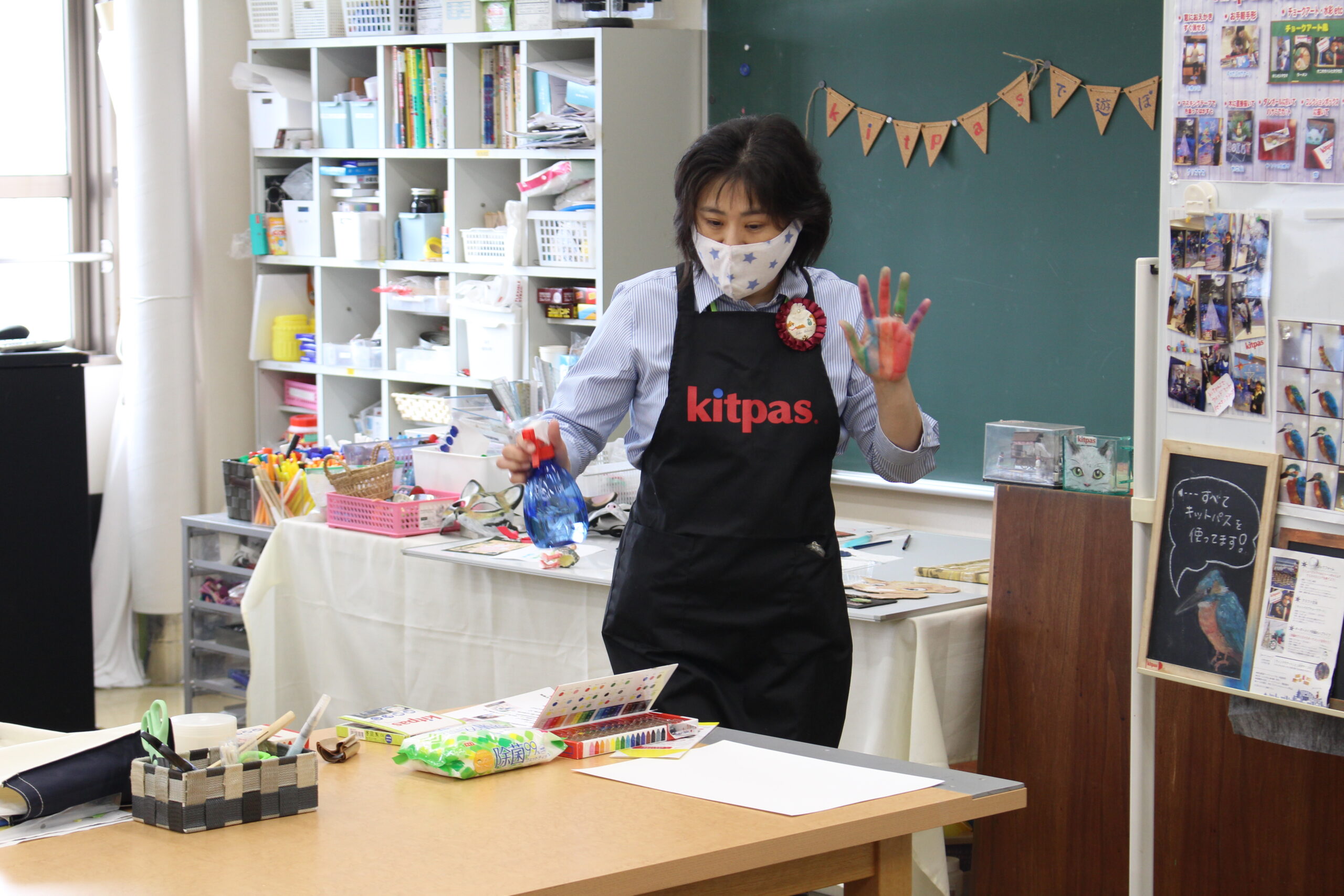 学生の皆さんは、様々な色を使って思い思いの作品を作り、kitpasアートについて学びました♪